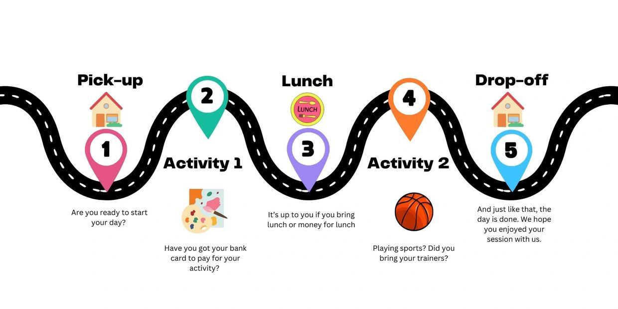 We run 7 days a week covering different activities on different days and evenings. Participants can select which days they attend, and can take part in 1 or all 7 days.